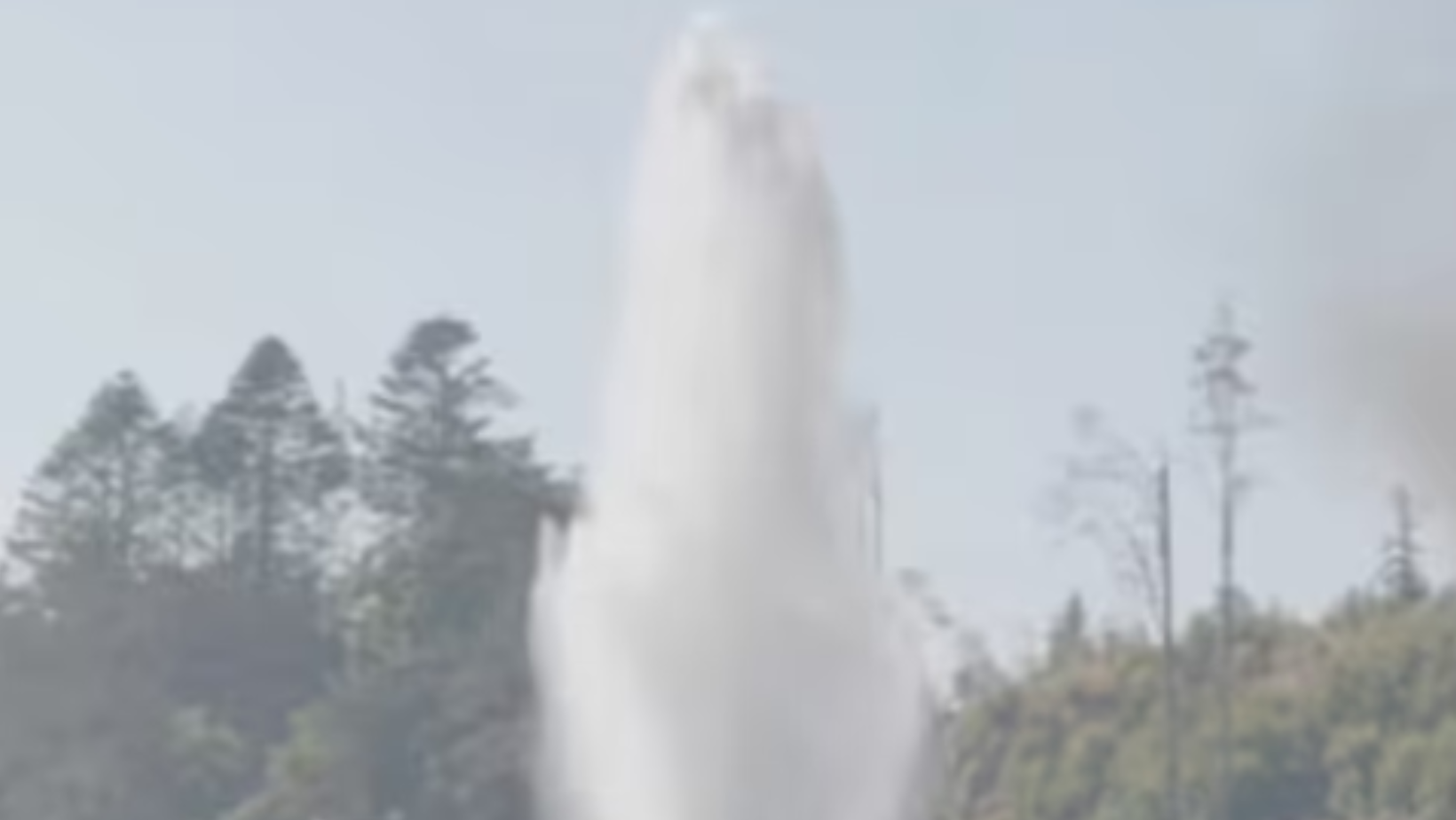 Eksplosjonen viser en lignende geysir-formasjon (en søyle av vann som skyter opp mot luften) når eksplosjonen inntreffer.
