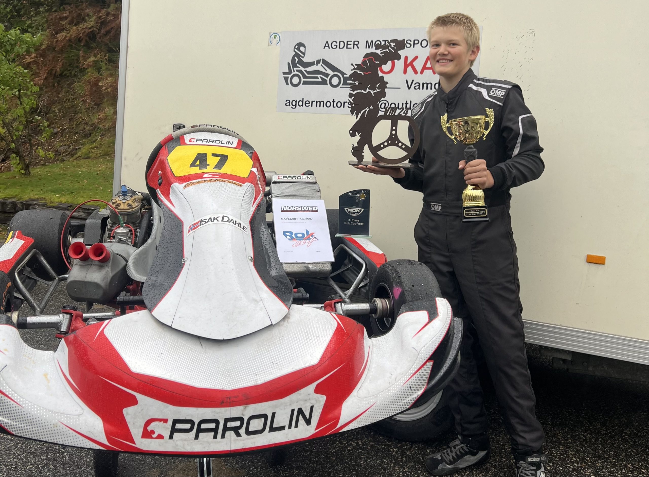 (AGDER PRESS): Isak Dahle (14) fra Agder Motorsport slo til med en 3.plass i Vestlandsmesterskap i Bergen i helgen. Kristiansanderen imponerte på banen.