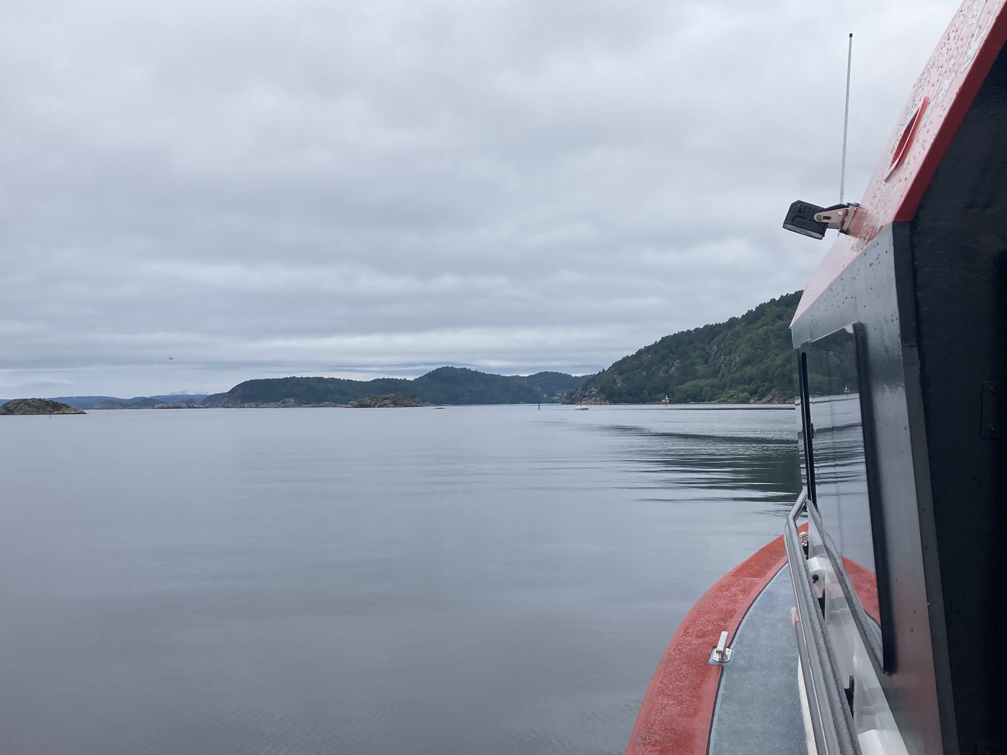 Redningsdykkere, helikopter, Røde Kors, en redningsskøyte, brannvesen og politi bistår i søket.